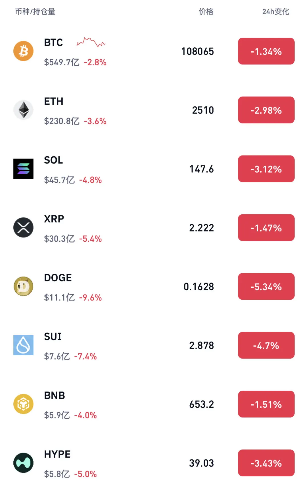 7月5日,加密货币市场走弱,截至发稿,比特币跌超1%,以太坊跌近3%,索尔币跌超3%,狗狗币跌超5%。