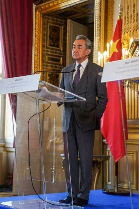 当地时间7月4日,中共中央政治局委员、外交部长王毅在巴黎同法国外长巴罗共同会见记者并现场回答提问。