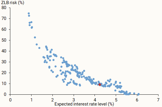 研究写道,当前的数据显示,与过去十年相比,美国未来政策利率预期水平较高。但由于近期不确定性上升,中长期来看,零利率下限(ZLB)风险仍然显著,与2018年的水平相似。