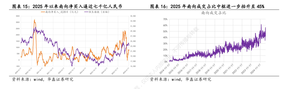 同时,港股基本面转弱:阿里、美团、京东外卖大战拖累科技股,AI叙事降温,恒生科技指数调整。情绪面指标和估值性价比均表明压力较大。
