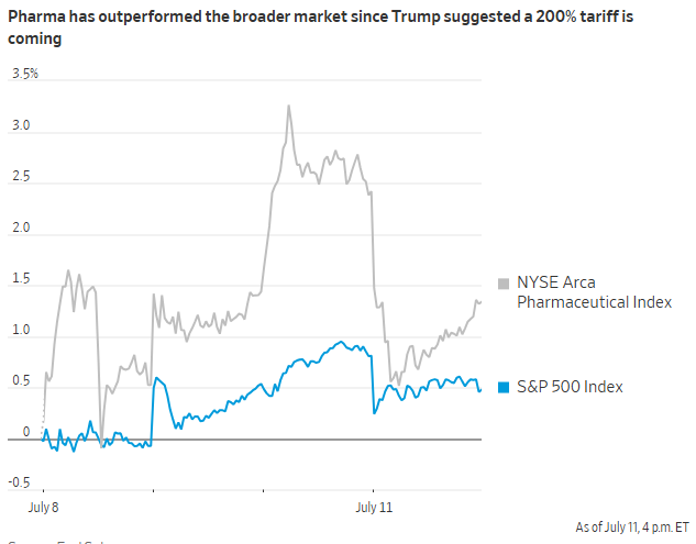 200%的药品关税数字,确实在许多电视新闻的滚动字幕中不断闪烁,但该行业的投资者眼下更关注的似乎特朗普提出的宽限期——有长达一年到一年半的时间可供企业调整。