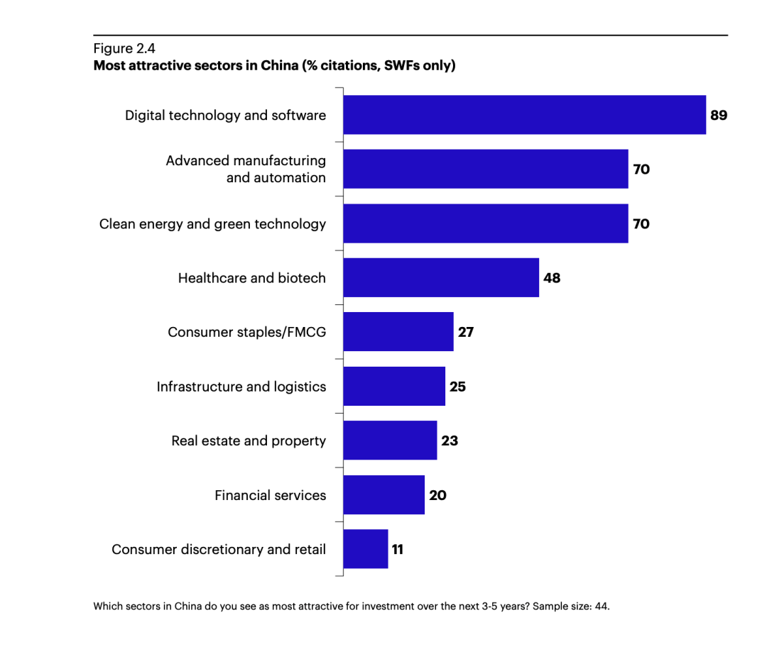 而在半导体、云计算、人工智能、电动汽车和可再生能源基础设施等领域,主权财富基金越来越将中国视为全球领导者。