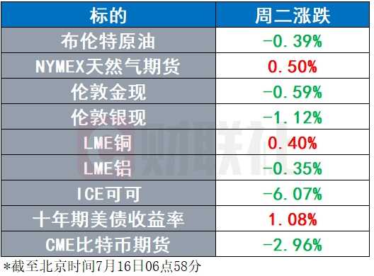 受到通胀数据影响,美国各期限国债遭到不同程度的抛售,其中30年期美债收益率又一次站上5%。稳定币法案在美国众议院受挫的状况,也令周一刚创出新高的比特币显著回调。纽约可可期货跌超6%,马来西亚报告可可豆加工量显著下滑引发需求减弱的担忧。