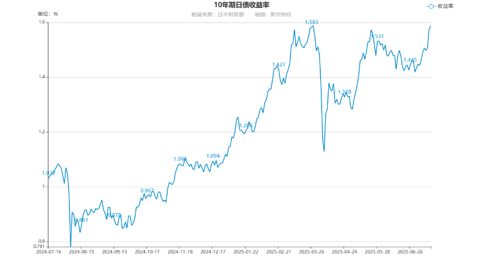 亚太市场,长期日债周三重获投资者买入,收益率普遍下跌,其中10年期日债收益率跌1.7BP至1.573%,20年期日债收益率跌4.4BPs至2.587%,30年期日债收益率跌8.2BPs至3.095%。