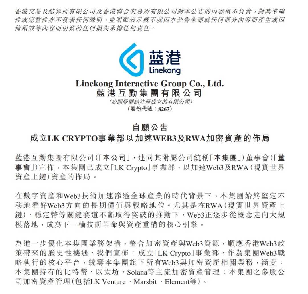 蓝港互动还强调,此举是为抓住香港Web3政策的历史性机遇,推动"从概念走向大规模落地"的战略转型。