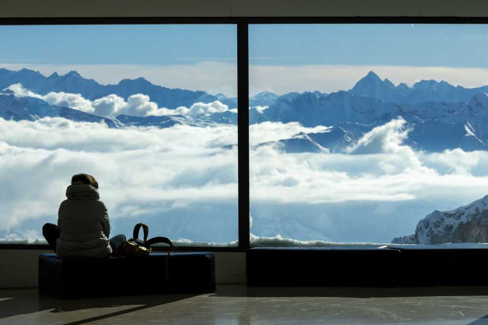 2024年1月19日,一名女子在瑞士皮拉图斯山上欣赏阿尔卑斯山脉景色。新华社记者孟鼎博摄