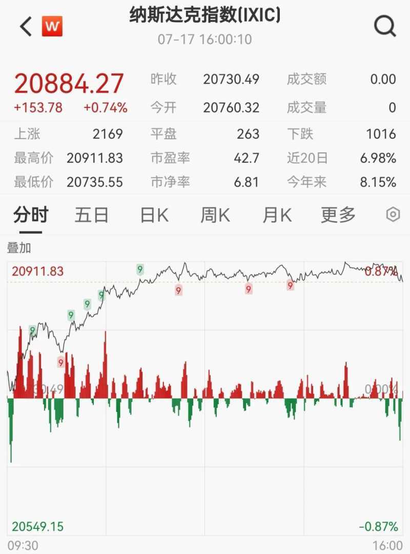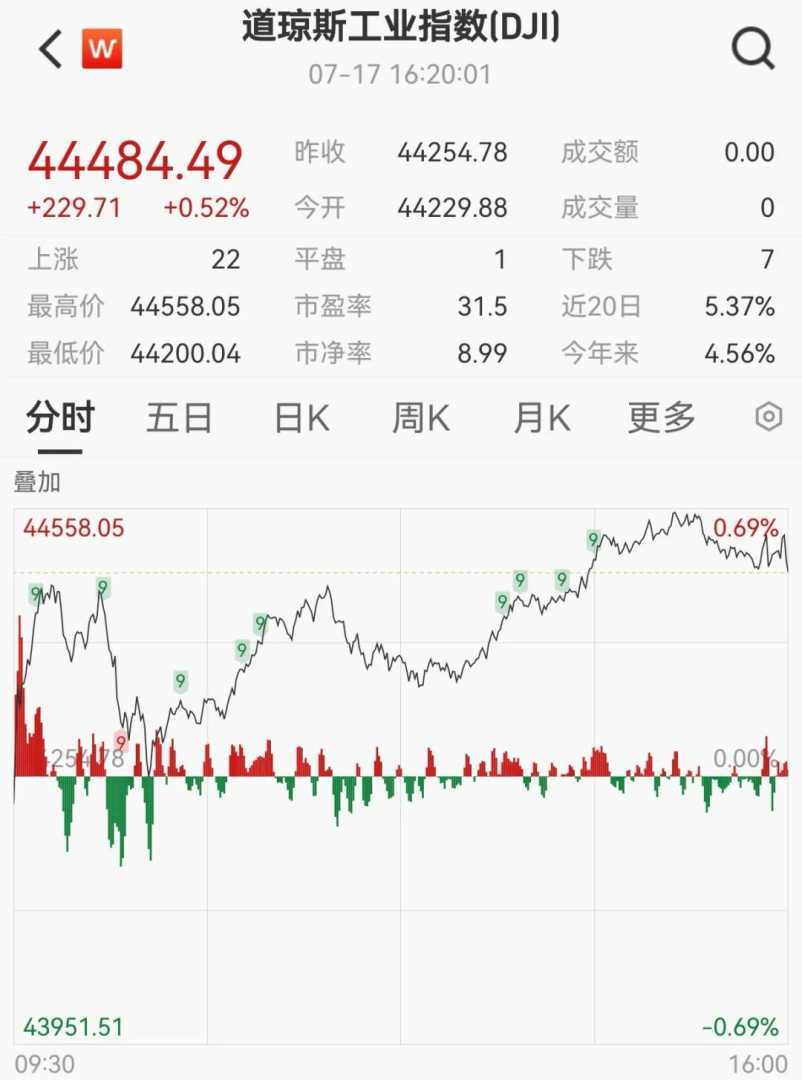 美东时间7月17日,美国三大股指全线收涨,道指涨0.52%,标普500指数、纳指均创新高。大型科技股多数上涨,微软、英伟达等领涨。