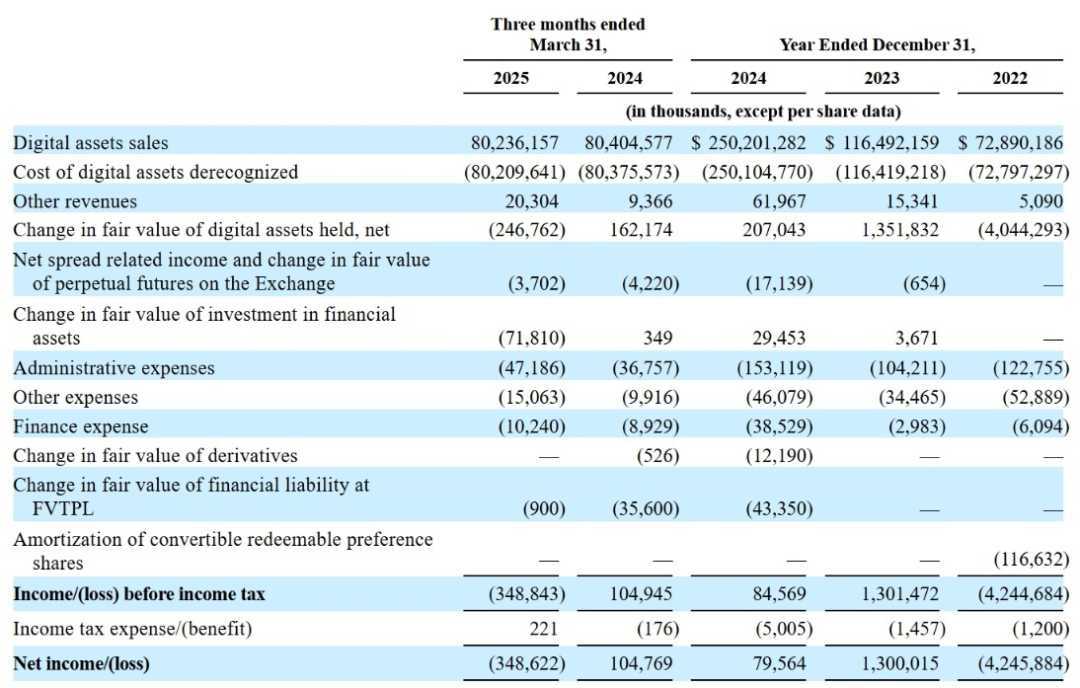 财务数据显示,Bullish今年一季度的数字资产销售额为802亿美元,但净亏损为3.48亿美元,去年同期净盈利1.04亿美元。