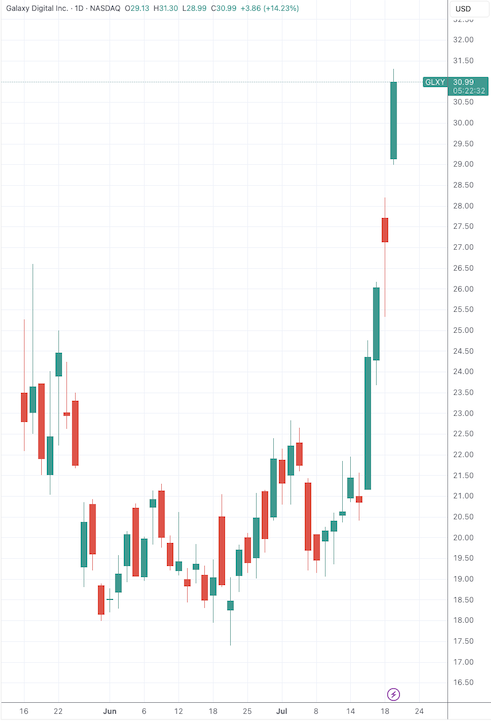 受到消息刺激,加密储备库公司异动,Galaxy Digital和Sharplink Gaming涨幅均超14%。