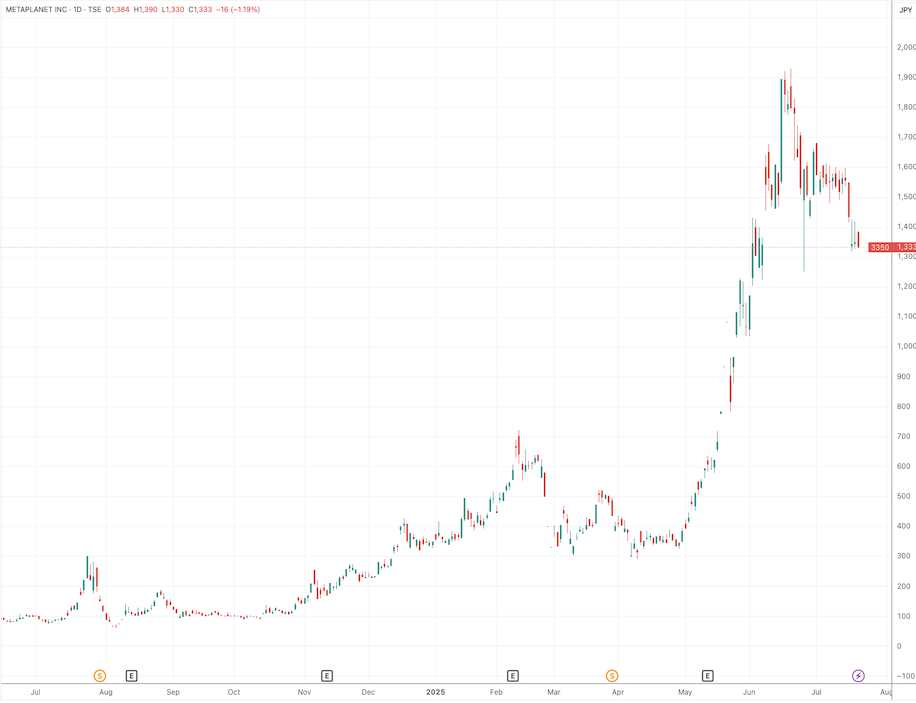 自2024年4月宣布转向购买比特币后,Metaplanet累计涨幅接近50倍。