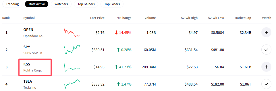 在连续数日将在线房地产买卖平台Opendoor“爆炒”后,本周二美国散户又瞄准了“新目标”:柯尔百货(Kohls Corp)……