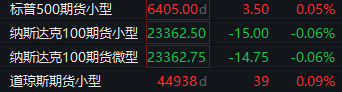 道指期货涨0.07%,标普500指数期货涨0.07%,纳指期货跌0.05%。