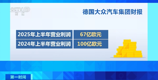 数据显示,2025年上半年,德国大众汽车集团销售收入为1584亿欧元,而去年同期这一数字为1588亿欧元;上半年,大众集团营业利润为67亿欧元,较去年同期的100亿欧元大幅下降约33%,税后利润更是同比下降超过38%,至44.77亿欧元,业绩下滑趋势明显。