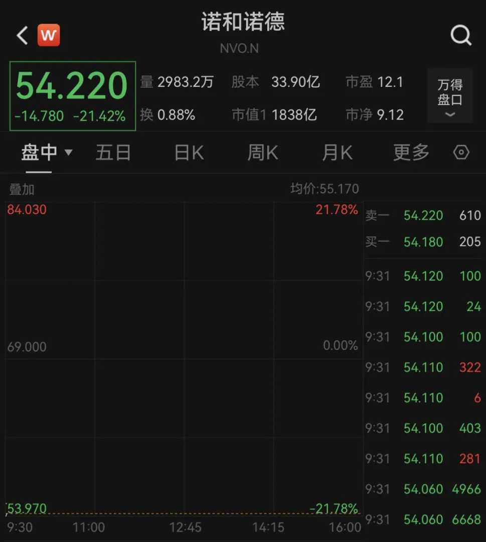 7月29日,诺和诺德股价开盘大跌,截至发稿,该股跌超21%,礼来也下跌近6%。