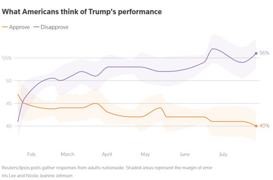 此前于7月15日至16日进行的民调显示,特朗普的支持率为41%。