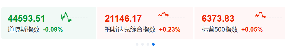 标普500指数微涨0.05%,纳斯达克综合指数上涨0.23%,道琼斯工业平均指数下跌46点。