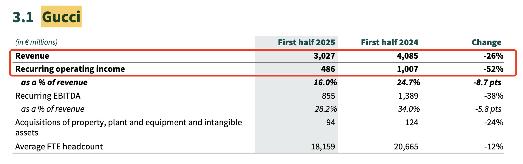 7月29日晚,开云集团披露2025年第二季度及上半年业绩,销售和利润均出现两位数下滑,核心品牌Gucci持续低迷。全球奢侈品行业仍未走出寒冬,开云集团需转型变革。
