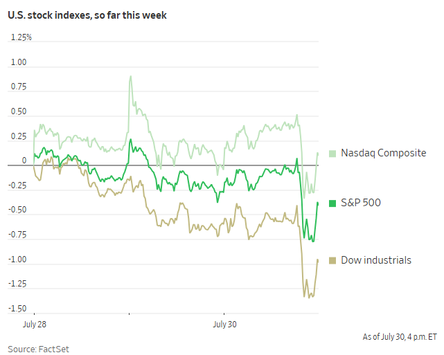 Nationwide首席市场策略师Mark Hackett表示:“由于投资者对9月降息可能性的信心下降,市场在新闻发布会期间走低。鲍威尔主席此前曾表示,如果没有关税,降息将是合适的,但这次他没有表达出这种语气。”