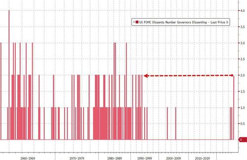 而鲍威尔的鹰派态度,显然也在某种程度上压制了联储内部目前存在的一些鸽派声音。如我们事先前瞻中提到的那样,本次美联储决议出现了自1993年以来首次有两名美联储理事(沃勒和鲍曼)投下反对票的情况。沃勒被外界视为是有望接替鲍威尔的下任美联储主席候选人之一,鲍威尔的任期将于明年到期。