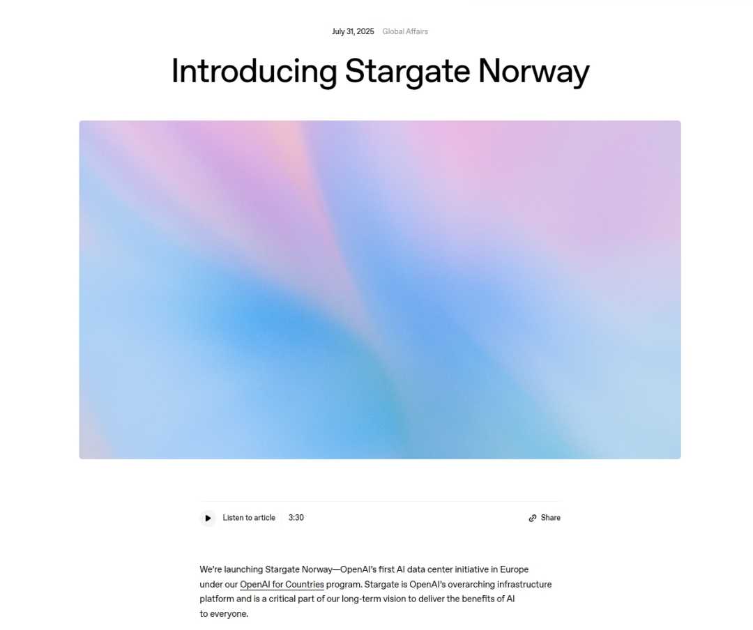 OpenAI挪威建AI数据中心 引领欧洲算力新篇章