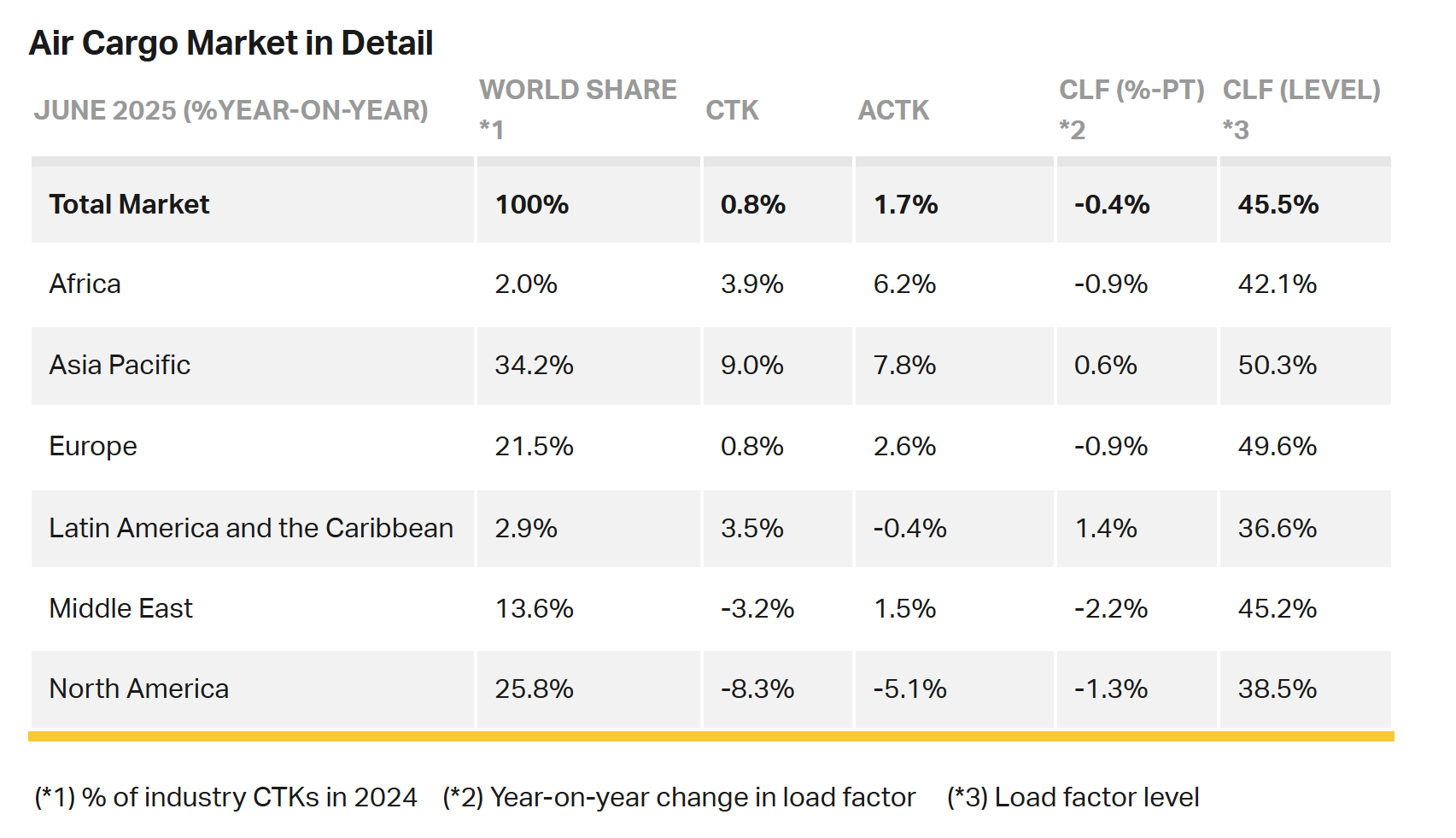 国际航空运输协会总干事Willie Walsh表示,6 月份的航空货运数据表明,稳定性和可预测性是贸易的重要支柱。关税政策导致进口到美国的商品被征收的关税远高于以往。