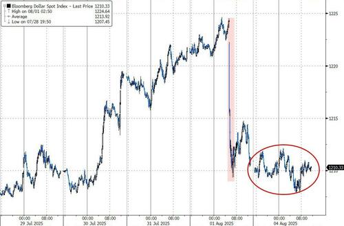 对美国机构政治化的担忧正值经济放缓迹象显现之际。尽管美元在刚刚过去的7月一度出现初步反弹迹象,但随着美国非农就业报告弱于预期,美元上周五对所有G10货币全线大幅下跌。
