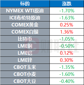 WTI原油期货收跌1.7%,报65.16美元/桶,原油市场供需变化影响价格走势。布伦特原油期货收跌1.63%,报67.64美元/桶。COMEX黄金期货收涨0.25%,报3435美元/盎司,黄金作为避险资产受关注。COMEX白银期货收涨1.36%,报37.835美元/盎司。