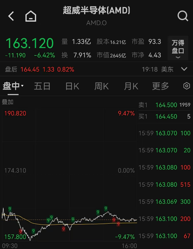因为业绩欠佳,当地时间8月6日,美股芯片股AMD业绩大跌,股价一度跌超9%,收盘跌6.42%。