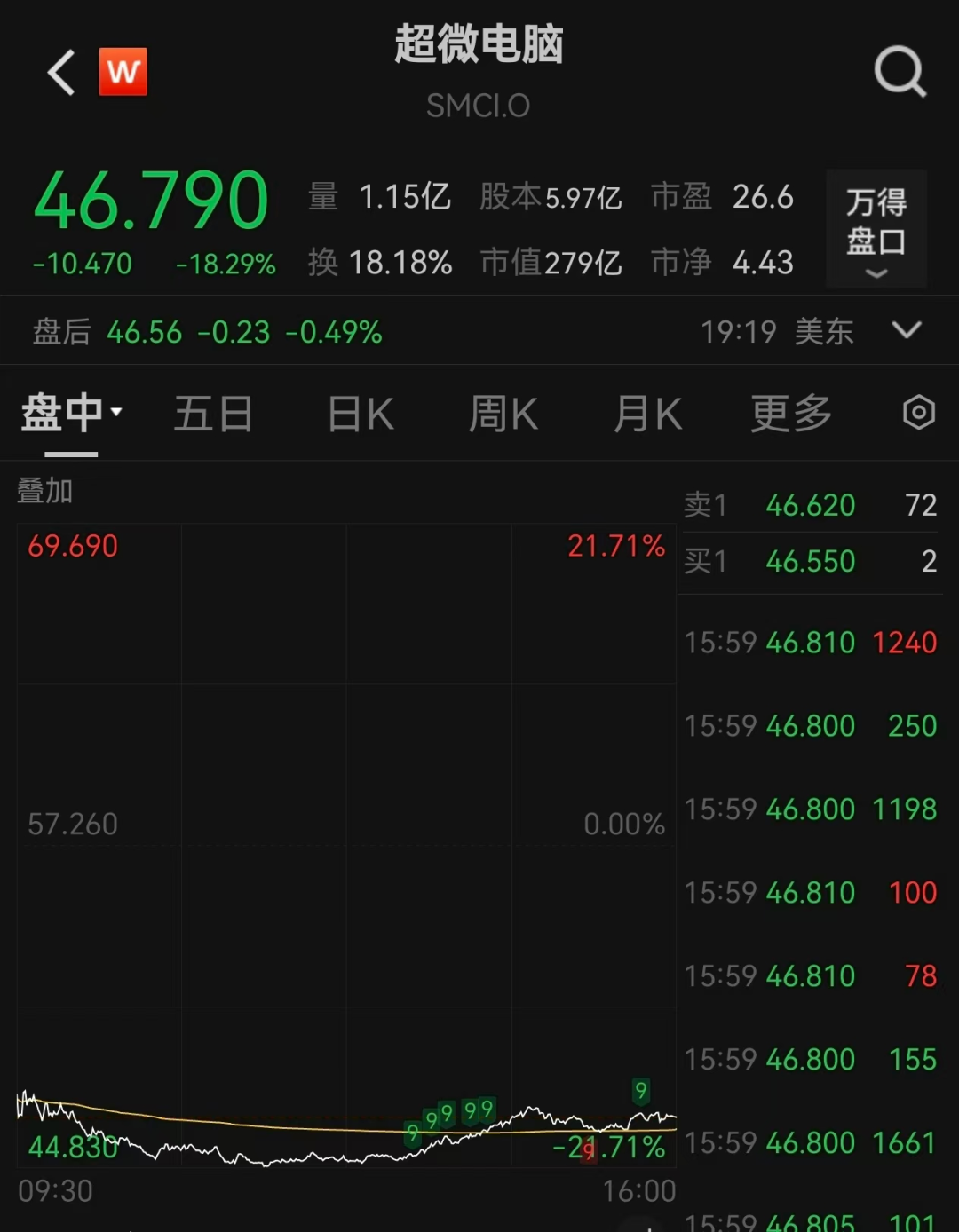 超微电脑大跌18.29%。超微电脑公布的第四财季报告,大幅下调全年营收指引。公司预计下季度营收在60亿~70亿美元之间,2026财年营收预期从此前的400亿美元下调至330亿美元,降幅达17.5%。
