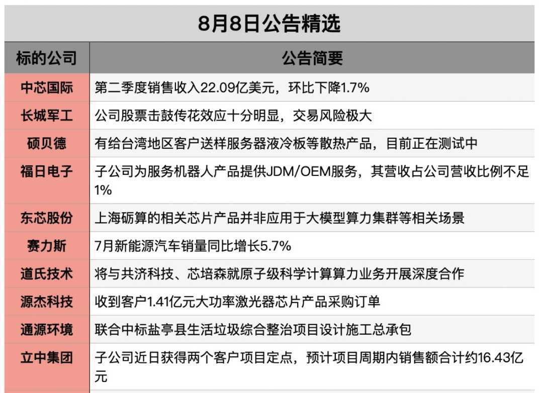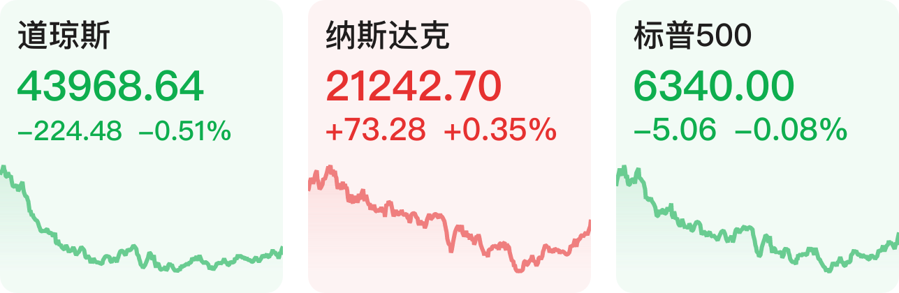 美股三大指数8月7日收盘涨跌不一,道指跌0.51%,纳指涨0.35%,标普500指数跌0.08%。热门科技股涨跌互现,AMD涨超5%,苹果涨超3%,Meta跌超1%,英特尔跌近3%。纳斯达克中国金龙指数收涨0.95%。热门中概股多数上涨,名创优品涨超3%,小鹏汽车、理想汽车、京东涨超1%,哔哩哔哩跌超1%。此外,制药巨头礼来大跌超14%,其口服减肥药数据不及预期。