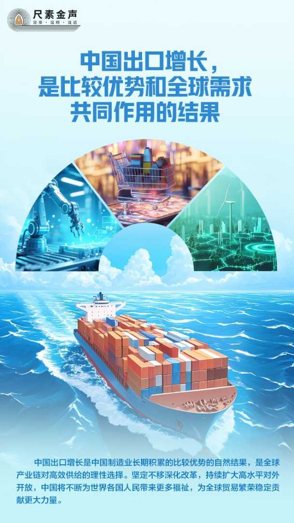 中国出口增长是中国制造业长期积累的比较优势的自然结果,是全球产业链对高效供给的理性选择。坚定不移深化改革,持续扩大高水平对外开放,中国将不断为世界各国人民带来更多福祉,为全球贸易繁荣稳定贡献更大力量。