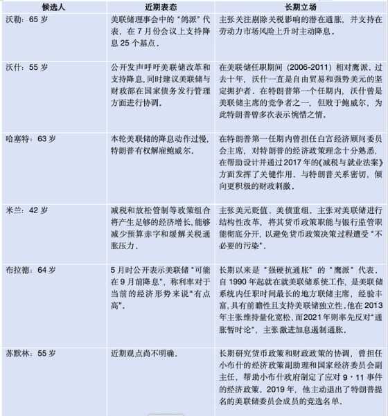 其他几位被曝露姓名的候选人也多支持降息。比如,哈塞特批评美联储降息过慢,并宣称特朗普有权解雇鲍威尔。沃什和布拉德曾长期以强硬抗通胀的鹰派形象示人,但近期立场出现转变,均表达了支持降息的观点。