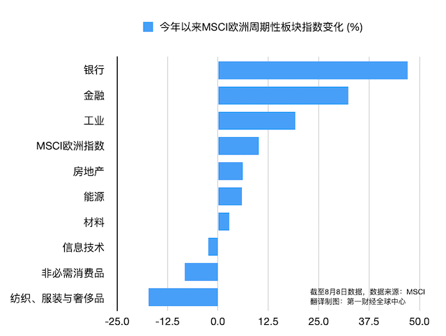 美国NDR报告指出,欧洲非必需消费品板块表现糟糕,奢侈品行业疲软尤为明显。MSCI欧洲纺织、服装和奢侈品总回报指数今年迄今下跌17%。