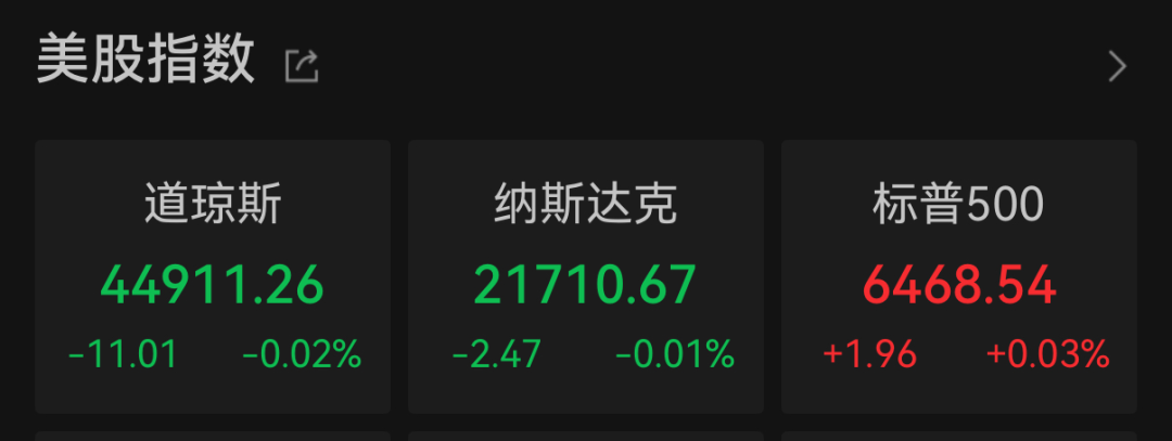 Wind数据显示,截至8月14日收盘,道指跌11.01点,跌幅为0.02%,报44911.26点;标普500指数涨1.96点,涨幅为0.03%,报6468.54点;纳指跌2.47点,跌幅为0.01%,报21710.67点。