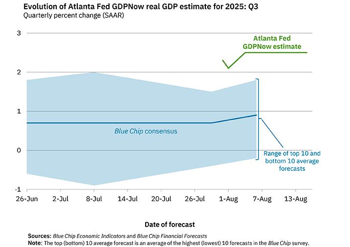 在零售数据公布后,亚特兰大联储GDPNow模型更新显示, 三季度实际GDP增长预估为2.5%,并将7-9月实际个人消费支出增长的预测从2.0%上修到2.2%。这较二季度的增速有所回落,但依然保持在1.8%的可持续扩张增速以上。