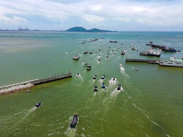 8月16日,南海伏季休渔期正式结束。在广东省茂名市博贺渔港,渔船纷纷出港,开始捕捞作业。 新华社记者肖恩楠摄
