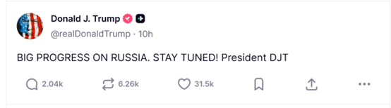 特朗普称在俄罗斯问题上取得进展 俄乌冲突或迎突破口