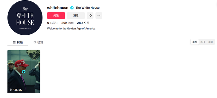 当地时间8月19日,美国白宫正式推出官方TikTok账号,迅速吸引超2万关注者,彰显TikTok全球影响力,白宫或借此加强与年轻群体联系。