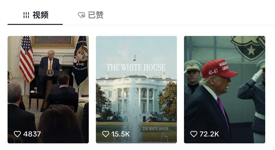 周二晚间,白宫账号悄然上线,连发三弹视频。