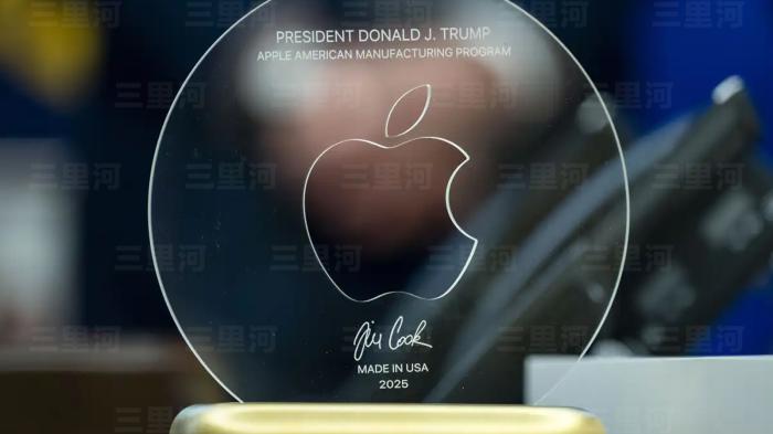 一边要基于市场现实作出决策,一边又无法回避来自白宫的指导和忠诚审视时,企业应该如何抉择?英特尔是让出部分股权,也有美国智库专家给企业的建议是“画饼”和“送礼”。如,苹果公司首席执行官库克就向特朗普赠送了一件金光闪闪的“定制礼品”——刻着特朗普名字、苹果Logo和“美国制造”的玻璃摆件,并镶嵌在纯金底座上。同时,库克还承诺未来四年在美投资6000亿美元,迎合特朗普“iPhone美国造”的憧憬。