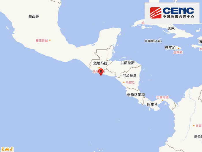 中美洲沿岸远海发生6.0级地震 震源深度30千米