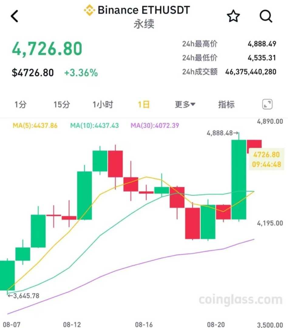 8月22日晚间至23日,加密货币市场集体走高。其中,以太坊强势拉升至4888.49美元,突破2021年11月初创下的历史最高价,再创历史新高,这一金融市场(财经聚焦)波动与黄金市场形成对比。