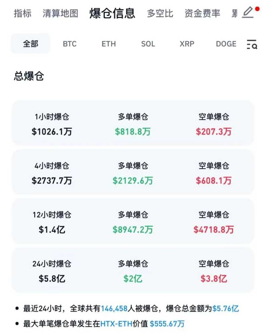 根据Coinglass数据,过去24小时加密货币市场共有超14万人爆仓,爆仓总金额为5.76亿美元。有市场人士表示,比特币资产如今正逐渐展现出成熟的迹象,其波动性也在降低,追逐价格波动的投资者如今转而投向了比特币的“竞争对手”以太坊。