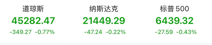 美东时间周一,市场对降息高昂的乐观情绪有所消退,美股三大指数收盘全线下跌,截至收盘,道琼斯指数跌0.77%,收于45282.47点;标普500指数跌0.43%,收于6439.32点;纳斯达克综合指数跌0.22%,报21449.29点,市场调整(美股调整)引发关注。