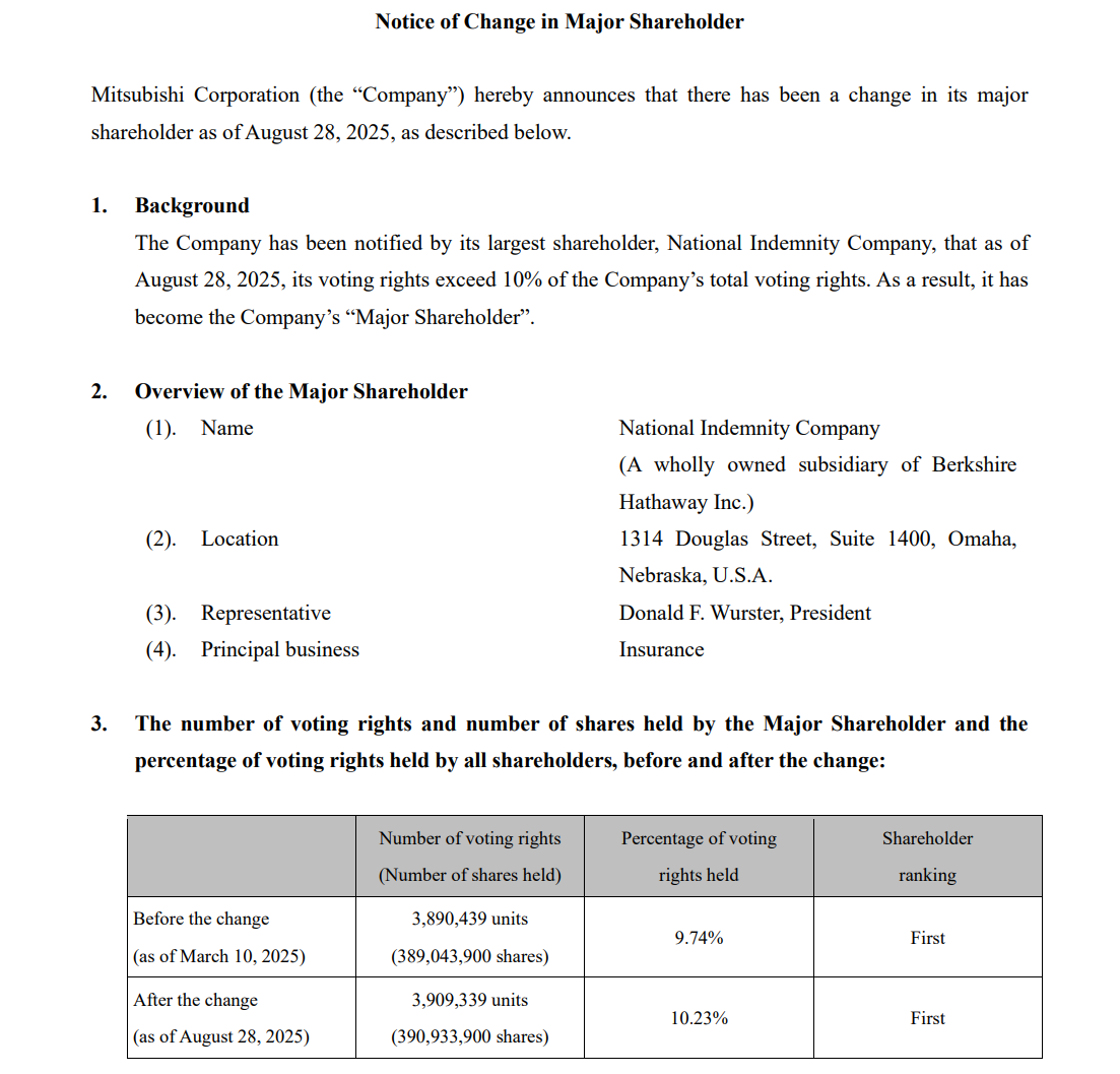 除此之外,三井物产周四收涨1.23%。三井物产发言人回应称:“我们将此次追加投资视为伯克希尔对公司持续信心与信任的体现,未来会进一步强化业务组合。”另外3家尚未回应是否获得增持的商社股也一同走高,因为过往巴菲特一向同步增持5家公司。截至周四收盘,住友商事涨1.10%、丸红涨1.17%、伊藤忠商事涨1.15%。今年3月时的增持文件显示,NICO分别持有这3家公司9.29%、9.3%和8.53%股份,显示出巴菲特对日本商社股的全面布局。