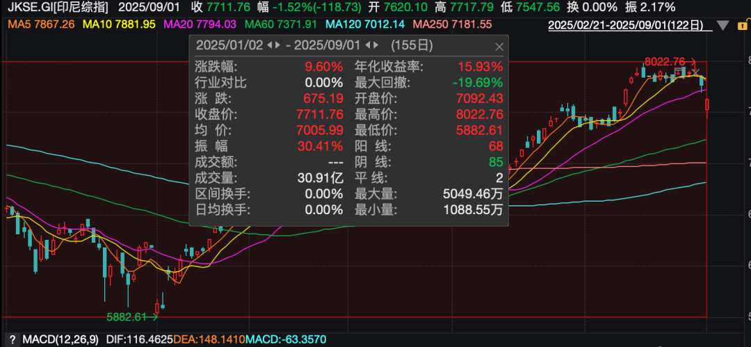 值得注意的是,在本次突发事件之前,印尼股市曾创下历史新高,市场表现强劲。今年迄今,印尼股市则上涨约9.6%,显示出其强大的增长潜力。
