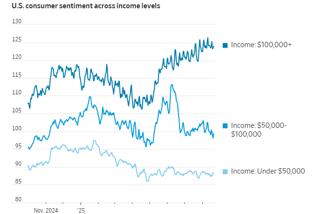 中产阶级——通常指年收入约5.3万至16.1万美元的家庭,正在成为乐观情绪消退的主要群体,其消费能力也受到影响。