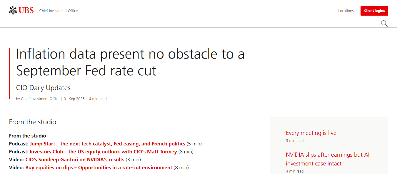 美联储降息预期升温,瑞银预测连续四次降息