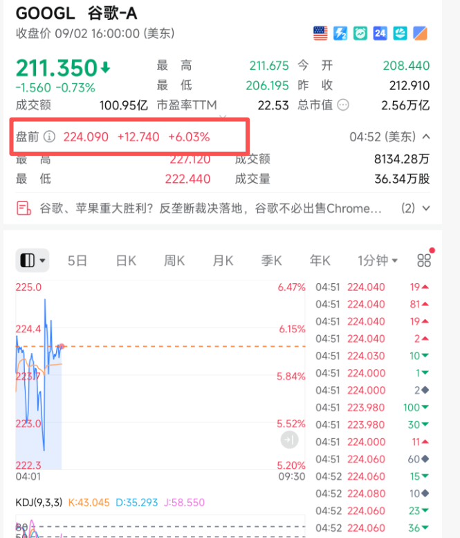 科技巨头谷歌迎来重大利好消息,股价暴涨。在9月3日的美国搜索市场反垄断案件中,谷歌成功避免了最严厉的处罚。谷歌反垄断案成为市场焦点,法官裁定禁止谷歌与其他公司签订排他性协议,但拒绝了司法部要求的强制剥离Chrome浏览器等更为严厉的措施,此举对科技行业影响深远。