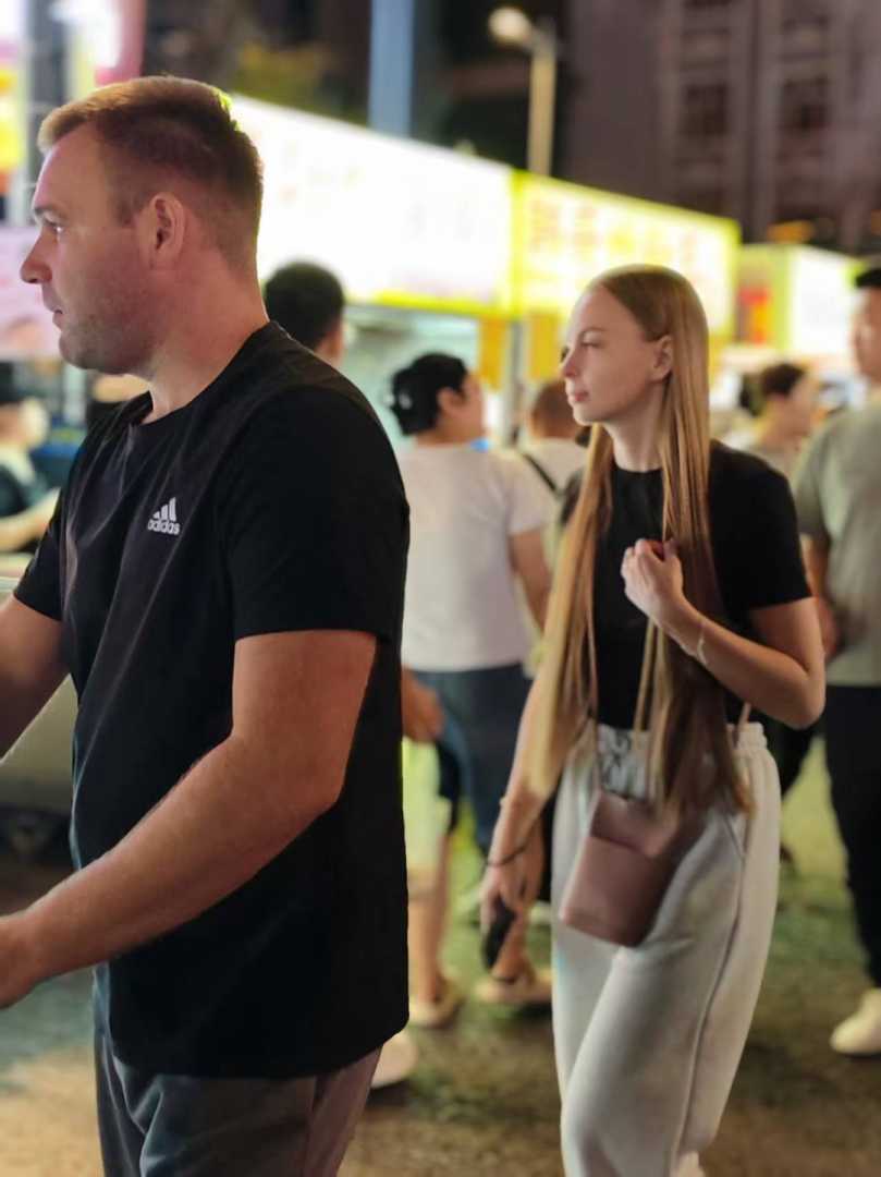 (9月4日,黑河夜市上逛街的俄罗斯游客,李航/摄 )